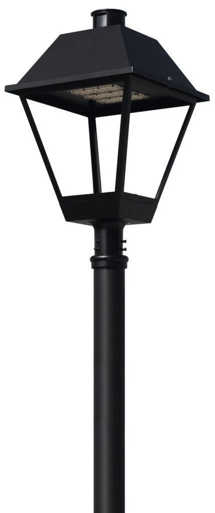 The Coach Style Lantern (CSL) is a high-performance, utility grade LED luminaire with a traditional styling allowing it to compliment well-established or historical settings. The CSL lantern has versatile mounting options, is wireless control compatible and incorporates features that promote long service life and easy maintenance. Utilizing a modular LED approach, the CSL is scalable in output and it’s also flexible with four standard light distributions and several custom distributions available. CSL is available as a post-top fixture, or as an arm-mounted fixture.