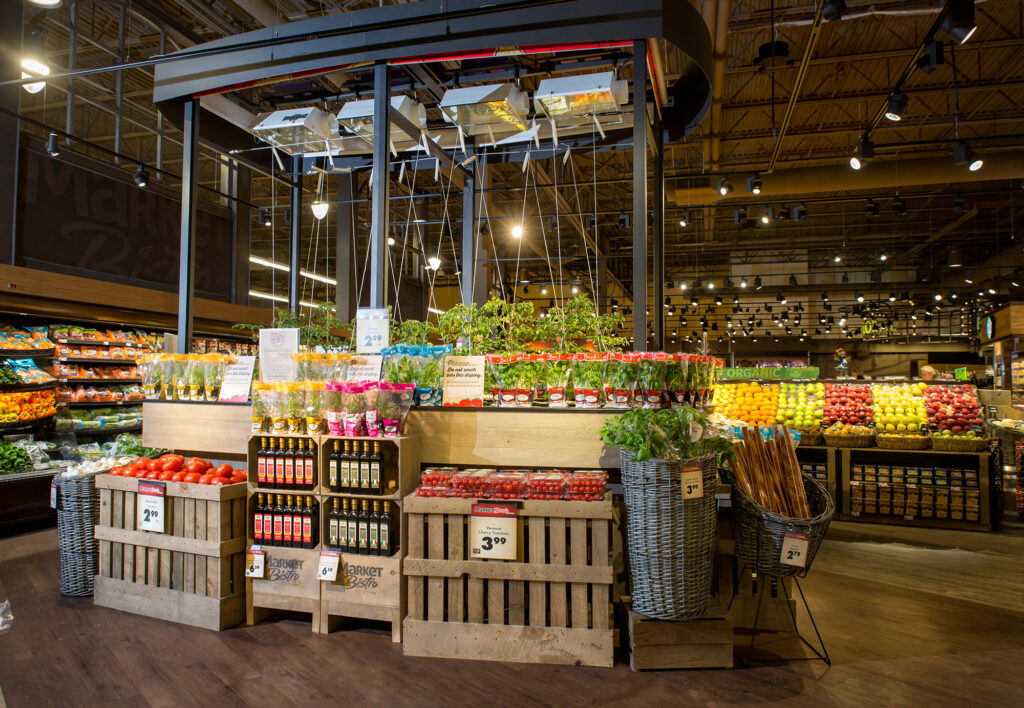 Washing the walls of the store with soft light, brightly lit end caps and specialty accent lighting on high-margin products like fresh foods contribute to a high-end retail experience instead of a traditional supermarket experience. Ambient lighting is out, and accent lighting is in. The