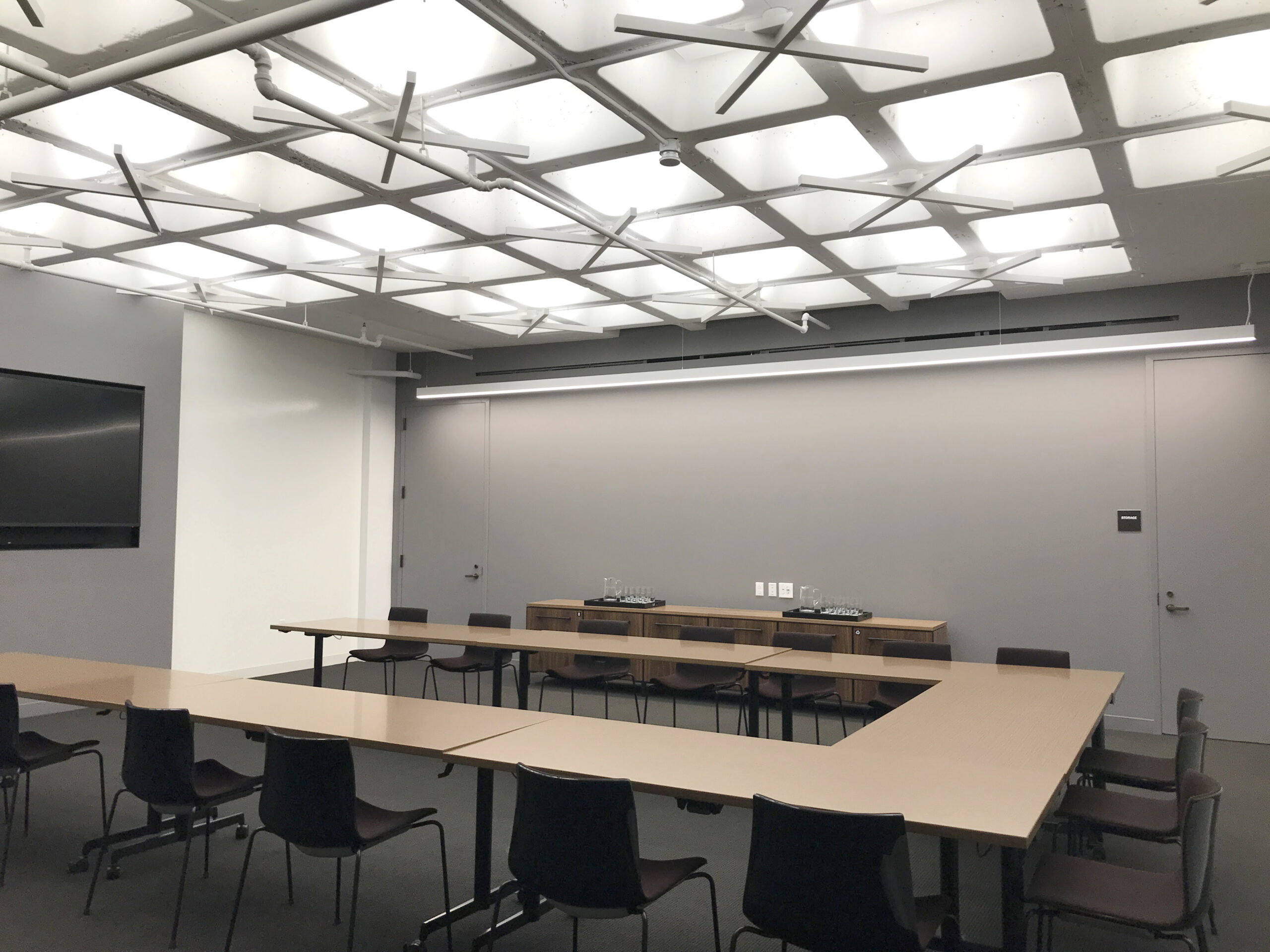 Indirect lighting is the most comfortable light for our eyes and it’s a great way to elevate a design while avoiding glare and over-illumination problems. Using only downlights in a room can make for a striking design, but it will ensure there are glare problems. By bouncing the light off the ceiling or a wall, the light becomes softer and gentler, making for a pleasing visual experience. Because indirect light is even, it is a great way to increase a room’s ambient levels, with direct task lights delivering light in key places it’s needed. Indirect light isn’t just for ambient light though. It can work as accent lighting, highlighting architectural features of a room. Lighting design firm, Lam Partners, used custom Amerlux indirect light fixtures to illuminate this below ground space. The indirect lighting put the unique waffle slab ceiling in the best light, while also creating an inviting environment. (See the whole case study here).Learn more about using indirect lighting in our blog post: